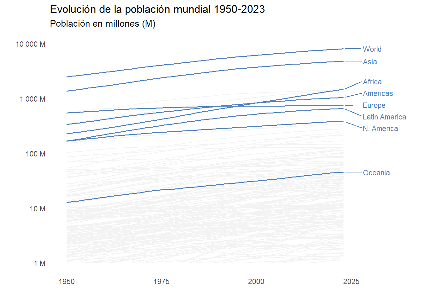 Según Lisa Charlotte Muth (Muth 2018), el color gris se considera el más importante en la visualización de datos. Este color facilita que los colores que se utilizar para enfatizar resalten más —como hemos visto en el ejemplo anterior—. El gris también es útil para datos de contexto general, y para suavizar la impresión visual general de los gráficos (véase la gráfica Figura 8.5.